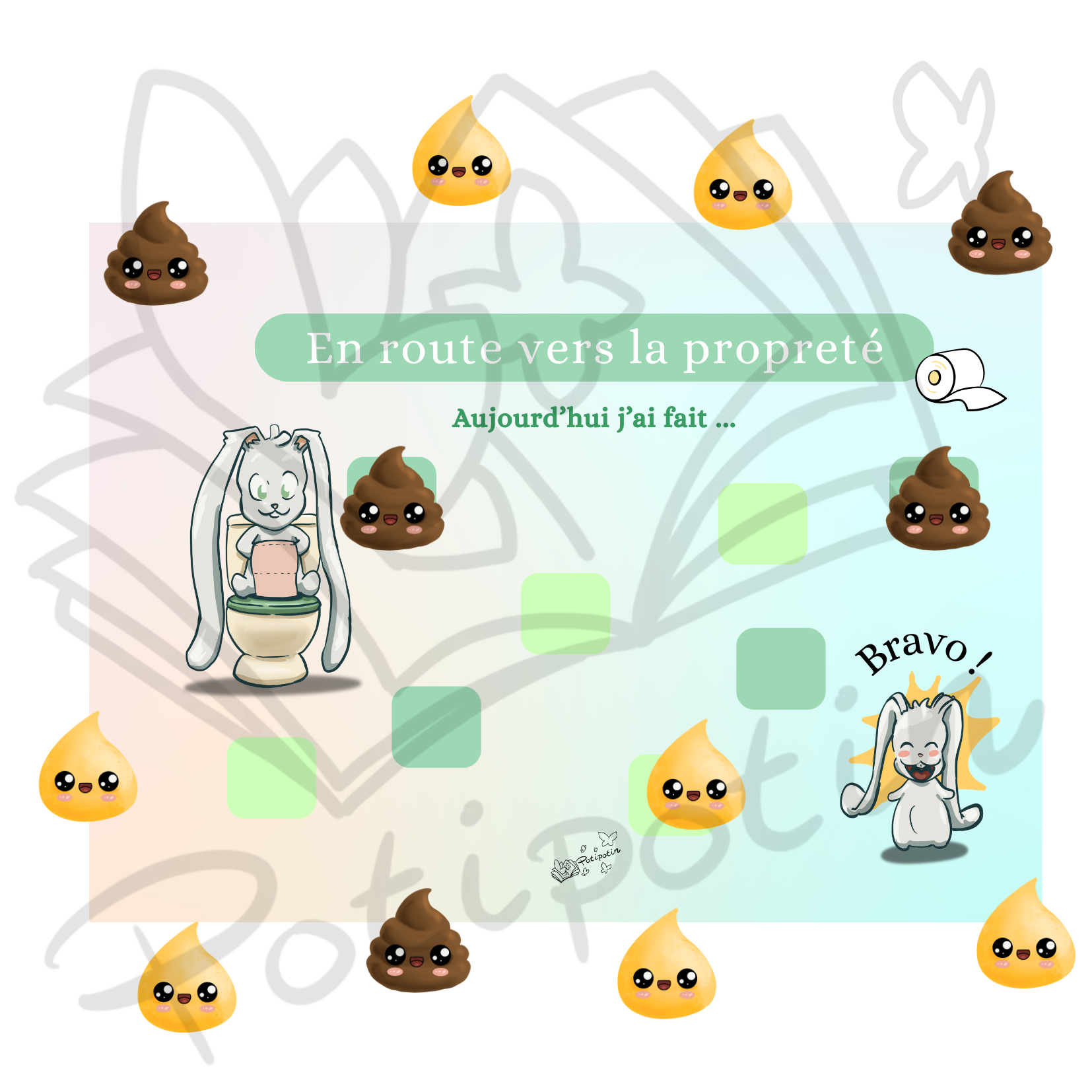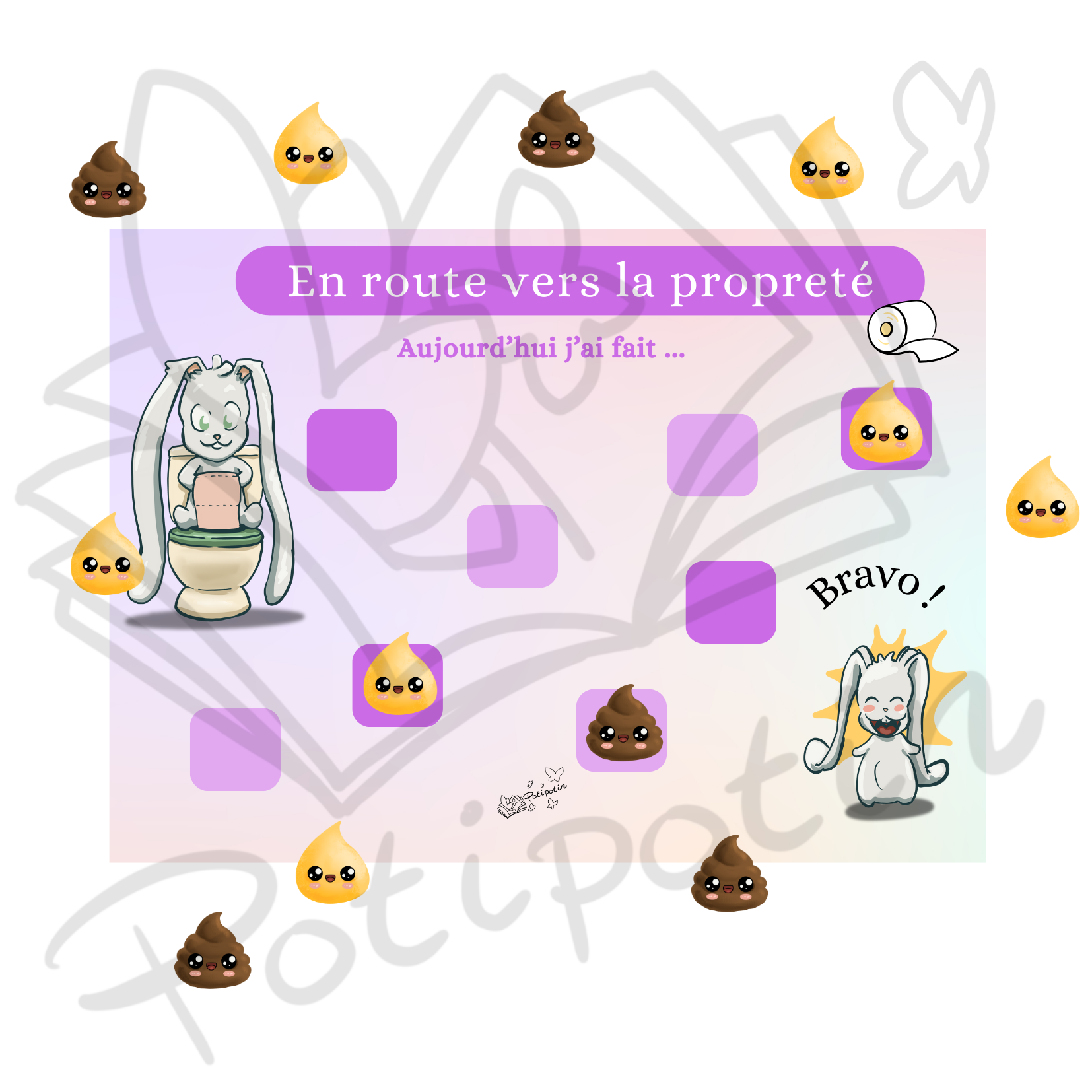 Fierté et Motivation : Chaque fois que l’enfant va sur le pot ou aux toilettes, il peut scratcher un item. Ce geste symbolique renforce sa confiance en lui et l’encourage à recommencer.